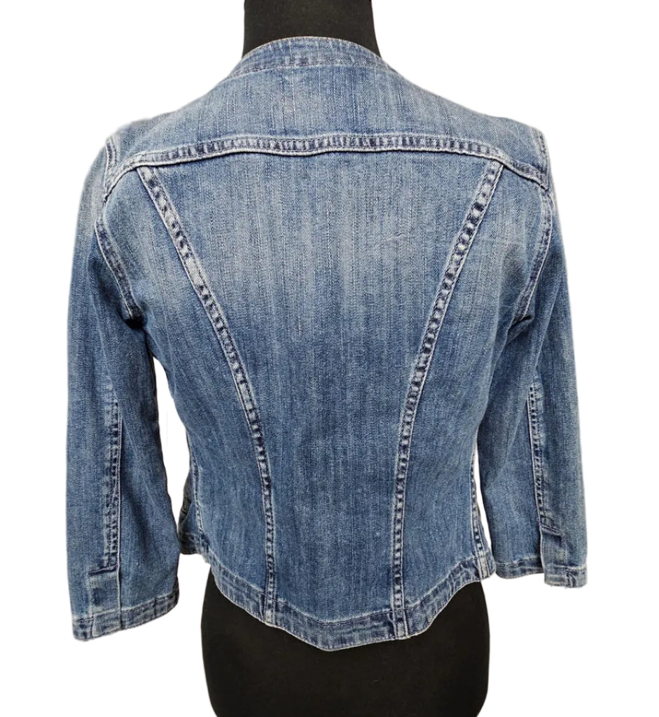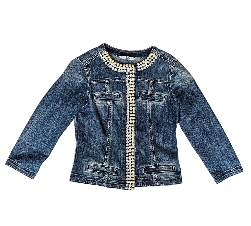Denim jacket is a Liu Jo model featuring imitation pearls and rhinestone embellishmen