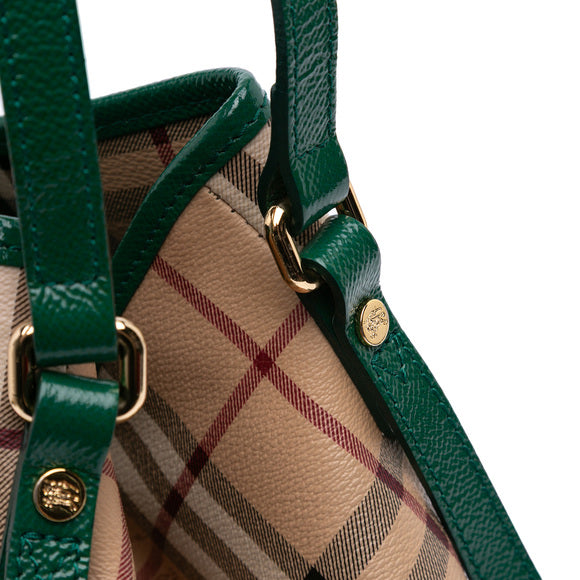 Burberry Beige/Green Haymarket Check PVC and Leather Large Canterbury Tote Bag