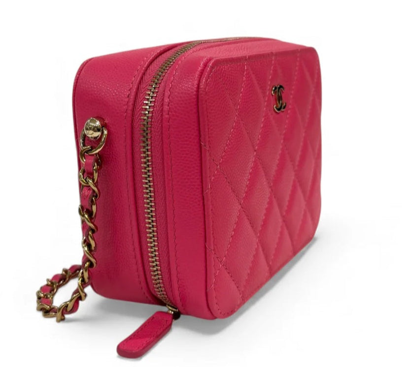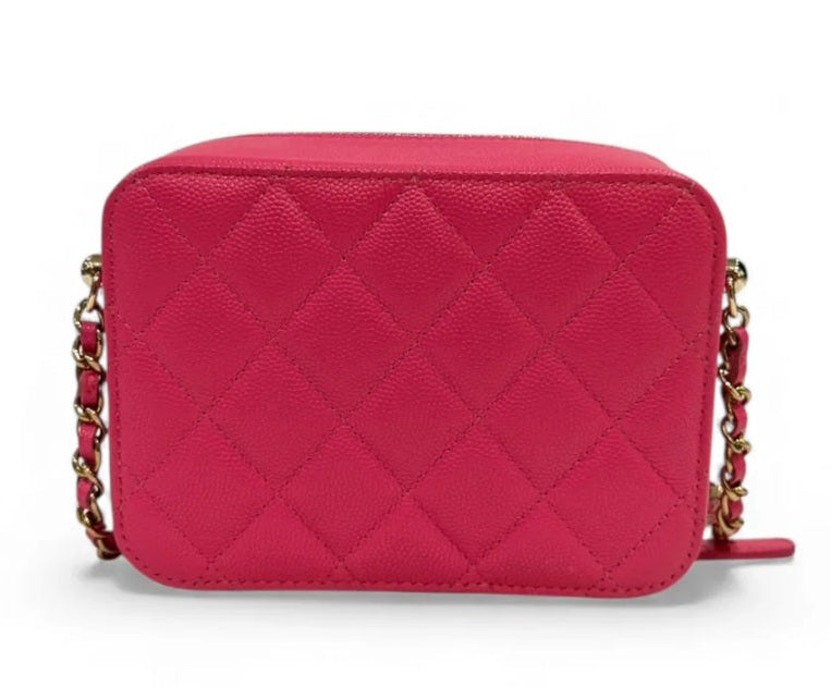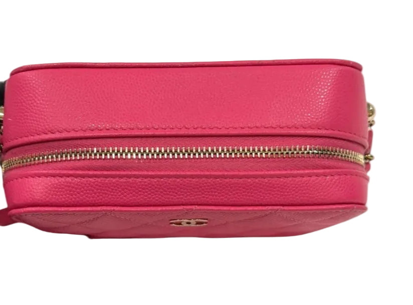 Light Pink Quilted Caviar Leather Mini Camera Bag